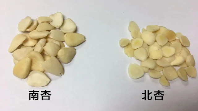 目前,市面上销售的杏仁有大有小,有圆有扁。尽管均称为杏仁,但实则来源于蔷薇科李属的多种植物,包括杏、山杏、东北杏等等。如今,除少数商品杏仁源自栽培的甜仁杏树外,多数仍采自野生杏树。因杏仁味道有所不同,又被细分为南杏与北杏,合称“南北杏”。其中,北杏仁味道苦涩,故称“苦杏仁”,南杏则味道偏甜,被称为“甜杏仁”。南杏仁通常个头比较大,颗粒也较饱满,而北杏仁体型较小,颗粒也比较扁平。不过,甜杏仁与苦杏仁以及南北杏的区分,都只是传统说法,并不是植物学上的分类。
