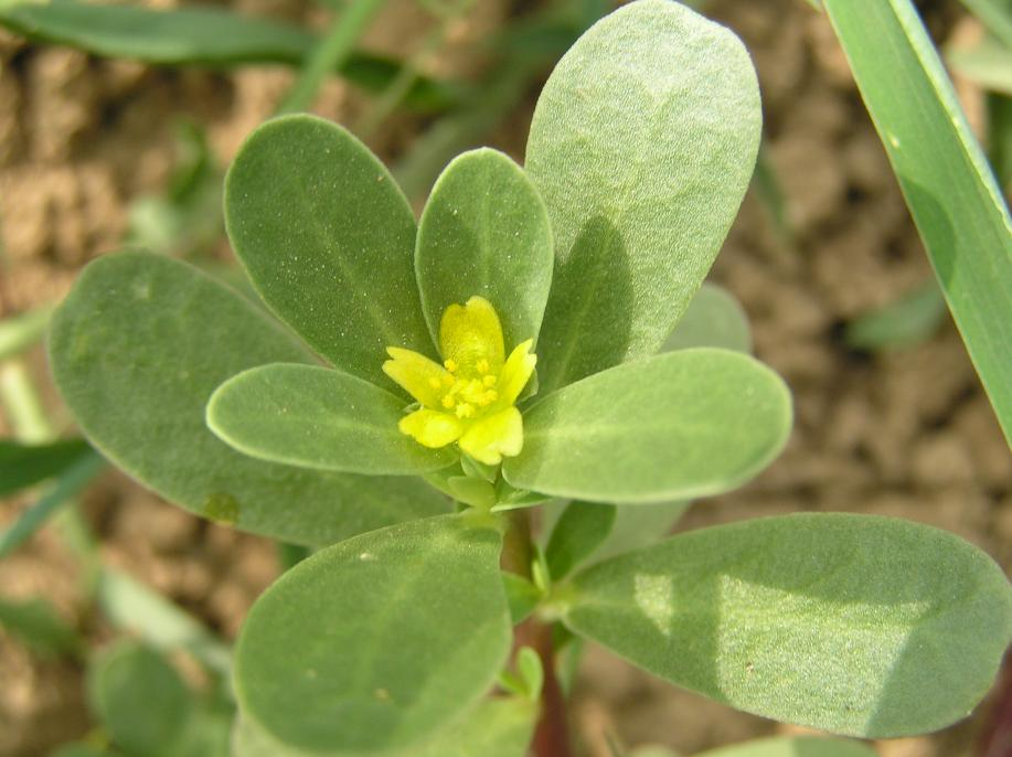 马齿苋(Portulaca oleracea)马齿苋科马齿苋属,一年生草本植物。马齿苋虽有“苋”字,但和常吃的苋菜没有任何关系。据《本草纲目》记载:“其叶比并如马齿,而性滑利似苋”故名。又以其“叶青、梗赤、花黄、根白、子黑”,马齿苋也被称为“五行草”。马齿苋全株无毛,叶片扁平且肥厚;紫红色的圆圆茎秆和深绿色的马齿状叶子都是肉肉的感觉;掰开茎秆就有透明的汁液流出来,这些汁液有种微酸的味道。马齿苋夏天开黄色的小花,小花5个花瓣,柱头裂成了4到6片,蒴果卵球形,成熟时期盖裂,内含大量细小而黑色的种子。