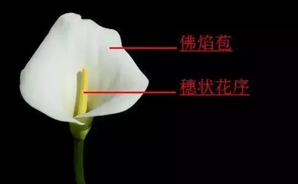 很多人以为包裹着黄色肉穗的部分是马蹄莲的花瓣?其实这个大“花瓣”,是一片变型的叶片,植物学上称其为“佛焰苞”。而中间柱状的“花蕊”,才是由无数朵密集的小花汇聚在一起形成的“肉穗花序”,这些小花在花托上的排列是有一定规则的,位于上端的是雄花,雌花则位于花托下部。佛焰苞是天南星科植物所具有的特殊结构,因此,天南星科植物的花序具有一个特殊的名称——佛焰花序。
