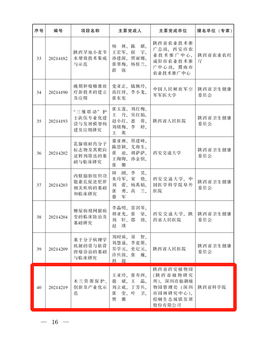 2022年3月29日,陕西省人民政府网站发布了陕西省人民政府关于2021年度陕西省科学技术奖励的决定(陕政字〔2022〕21号),我园王亚玲研究员团队成果“木兰资源保护、创新及产业化示范”项目喜获陕西省科学技术进步二等奖。