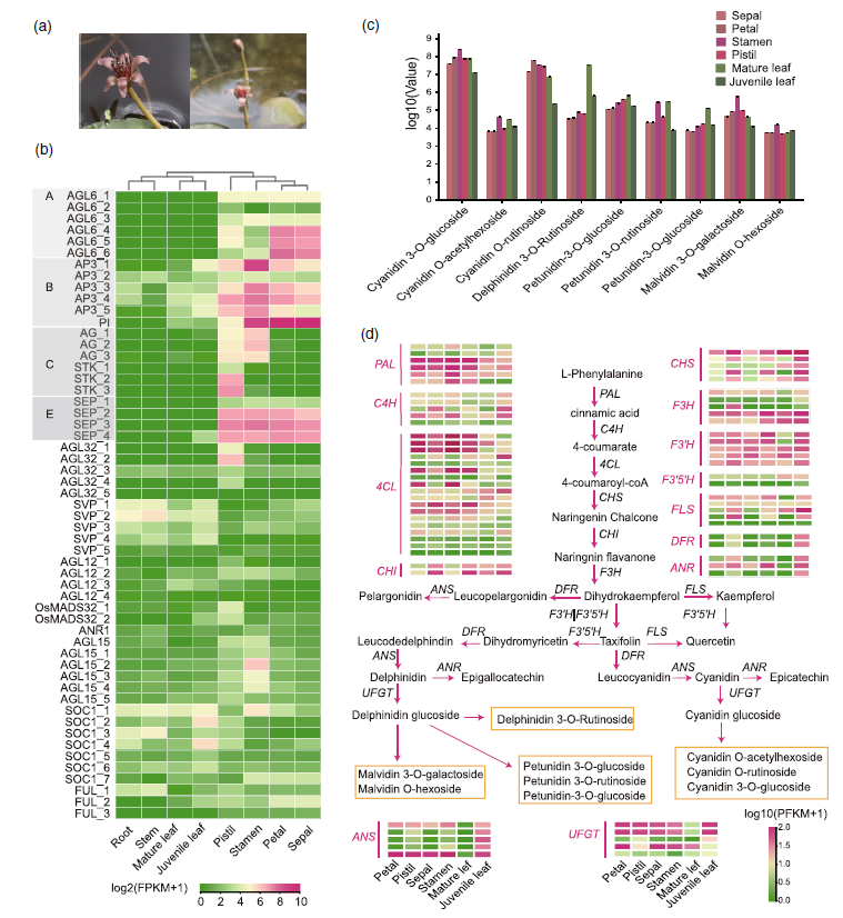 图3. 莼菜的花发育及花青素合成相关基因分析