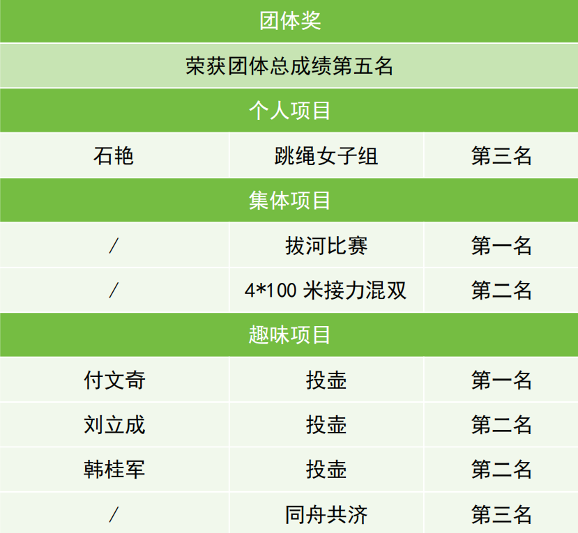 在紧张激烈的角逐中,植物园代表队团结一心,奋勇拼搏,取得了十分优异的成绩:最终斩获总成绩第五名,并一举夺得拔河团体赛第一名、混合接力第二名、投壶第一名等多个重要奖项,充分展现了植物园职工强大的凝聚力和昂扬向上的精神风貌。