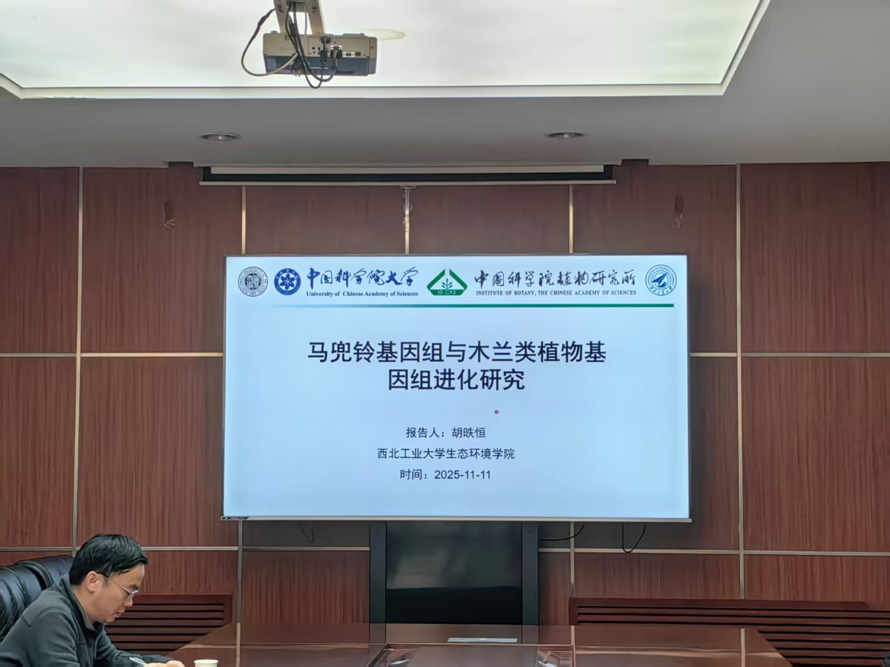 2025年11月11日下午,西北工业大学生态环境学院胡昳恒博士后应邀来访我园,在翠华园区一楼会议室作了题为《马兜铃基因组与木兰类植物基因组进化研究》的学术报告。本次报告会由薛文艳博士主持,共18名科研人员参与。