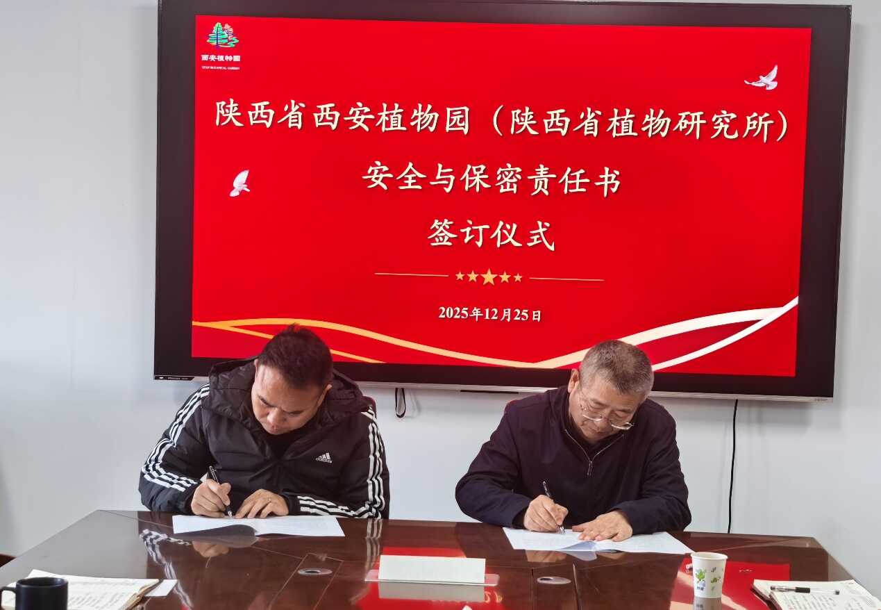 会后举行了安全与保密责任书签订仪式。园主任岳明与各部门主要负责人现场签署了责任书,进一步明确了管理职责,旨在筑牢安全保密防线,切实保障职工生命财产安全、国家秘密及单位科研成果安全。