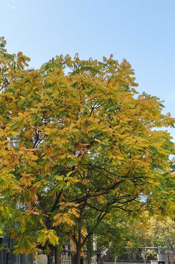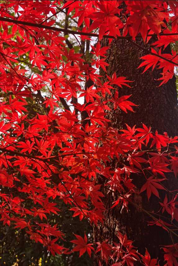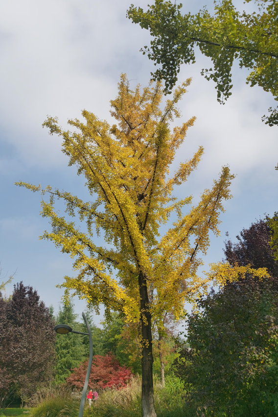 每年秋色的浓淡、早晚取决于当年特定的天气条件。晴朗干燥的白天、凉爽的夜晚,最有利于花青素的积累,从而造就绚烂的秋景。园林设计师也将这些知识运用到了造园艺术中。最常见的搭配手法,是将不同色系的秋色叶植物相邻种植。比如,将叶片火红的红枫与满树金黄的银杏种在一起,红与黄的强烈对比,在秋日晴空下格外醒目,营造出热烈而辉煌的景观效果。有时,设计师也会运用同色系的渐变来营造和谐之美,从鹅掌楸的浅黄,到无患子的金黄,再到鸡爪槭的鲜红,层层递进的暖色调带来温暖而丰富的视觉体验。