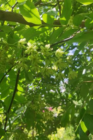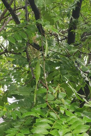 初春,皂荚树的羽叶细嫩,不起眼的黄白色小花点缀其间,带着几分青涩与含蓄。随后,新生的皂荚出现在枝头,荚果通体鲜嫩翠绿,覆着一层天鹅绒似的白色茸毛,微微弯曲的形态如同一只只俯首小憩的天鹅。这时的皂荚树,浑身被温柔包裹,安静、矜持,散发着青春的生命力。